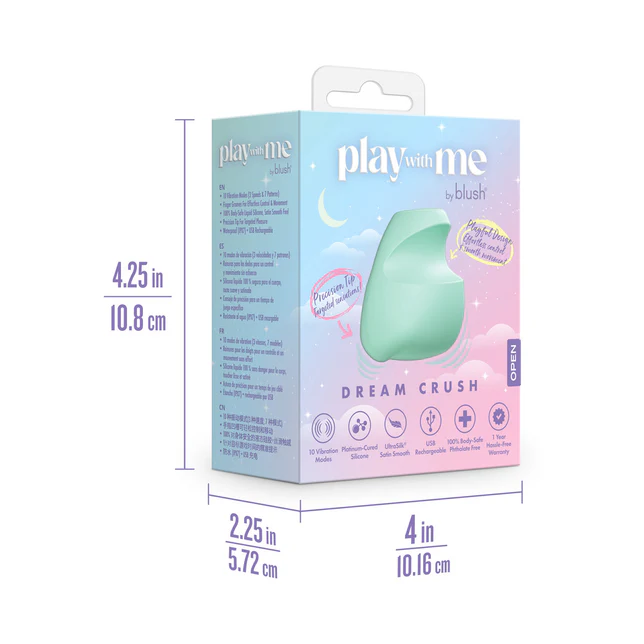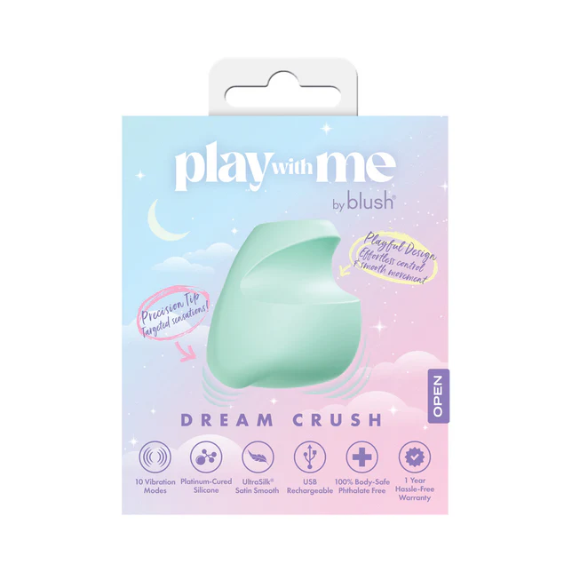 Meet Dream Crush, the irresistible vibe you’ll keep coming back to. Designed to ignite your deepest desires, this satin-smooth vibrator offers 10 captivating vibration modes, 3 speeds and 7 pulse patterns, that move effortlessly between subtle pulses and deep, breathtaking vibrations. Dream Crush’s sculpted finger grooves give you full control, letting you glide through each movement with precision and ease. Whether you’re building anticipation or surrendering to release, the precision tip delivers pulsing waves of stimulation exactly where you crave them most. Crafted from 100% body-safe liquid silicone, its satin smooth finish feels like a dream. IPX7 waterproof and USB rechargeable, Dream Crush is always ready to play, whether in the bath, bedroom, or anywhere your fantasies lead. Let your dream crush sweep you away into moments of pure indulgence.